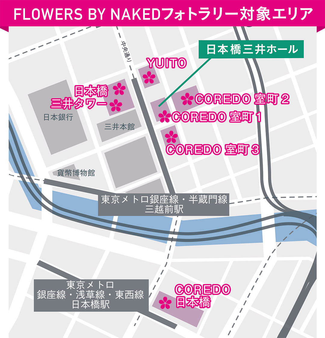 「FLOWERS BY NAKED 2019 ー東京・日本橋ー」が開催中の2019/3/3(日)まで、日本橋に散らばったFLOWERSの花文字を探す「FLOWERS BY NAKEDインスタフォトラリー」を開催しています。