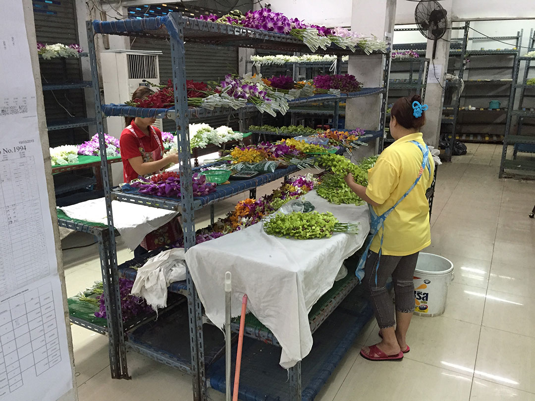 株式会社 須藤商会では、平均気温が25度を超えるタイから、切り花・切葉を日本国内へ輸入しています。また、国内業務だけでなく、日本人スタッフがタイに駐在し、輸出業務の指導を行なっています。日本人が現地で、協業するのは輸入商社として「できる限り良いお花を日本国内へご提供する」は勿論のこと、タイのスタッフにも「良いのものを出荷する大切さ」を伝えたいという考えがあるからです。